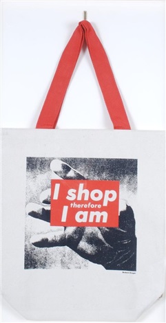 Barbra Kruger's photograph gives representation to consumption in terms of the literal meaning of the word. By displaying the words, "I Shop Therefore I Am," Kruger is making a statement in regards to material consumption. The open-ended statement allows the viewer to re-think materialism.